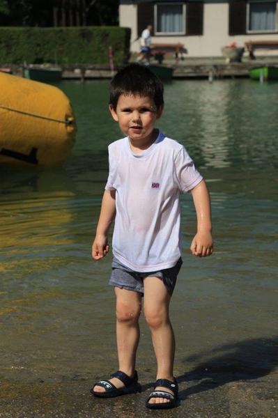 Milujem túto fotku. Boli sme na dovolenke na Balatone, a môj syncek este nebol celkom fit po chorobe. Po celom dni prosenia som mu dovolila, ze môže ísť k vodičke ale môže si namočiť len nôžky. Po chvíľke som ho našla takéhoto a on mi na to povedal: "maminka ale nôžky mám suché"
