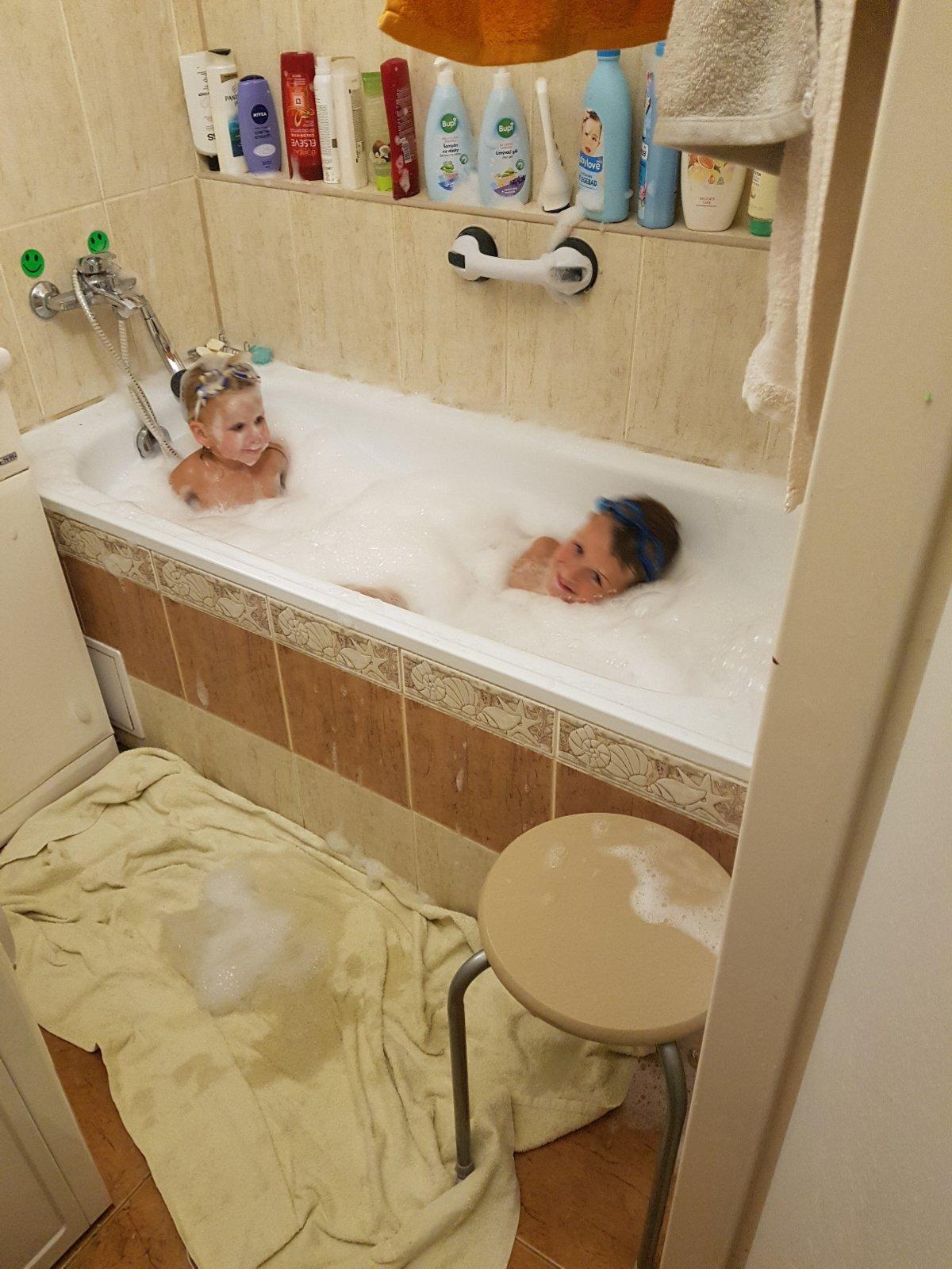 Milujem chvile mojich deticiek vo vani, lebo oni miluju kupanie a vsetko s nim spojene ☺Vzdy je kopec vody vsade, ale tie stastne ocka stoja za to 😍