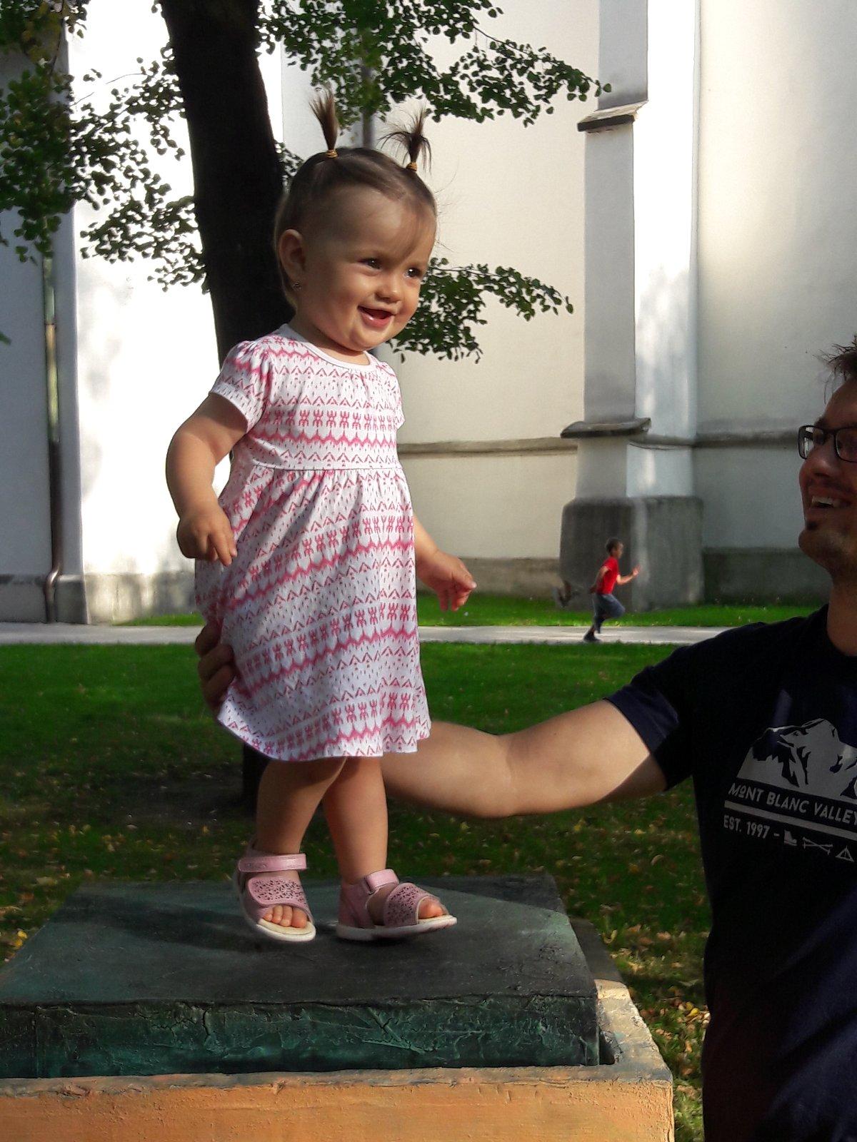 Vybrať jedinú fotku je veľmi náročné,ked tých pekných spomienok je neúrekom 🙂 vyberám túto z konca leta,kedy ešte príjemné hrialo slniečko a boli sme sa pozriet na festival živých sôch,ktoré sa ale Eliške veľmi nepáčili.