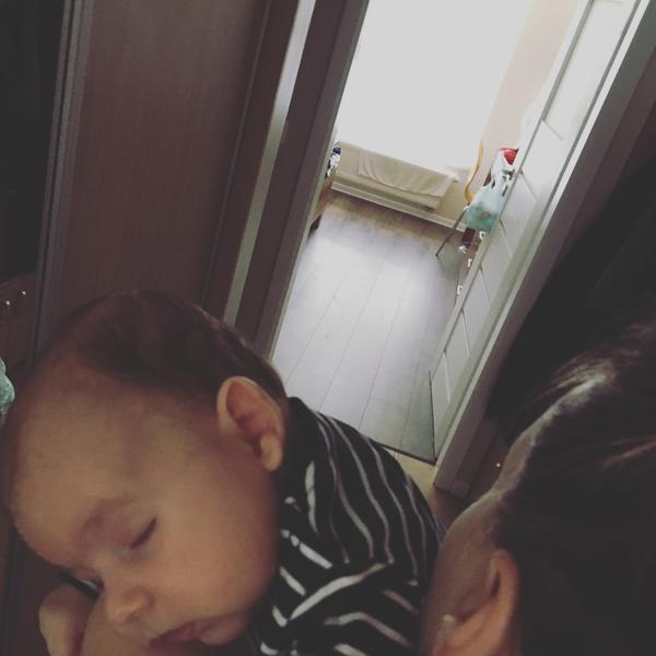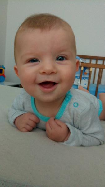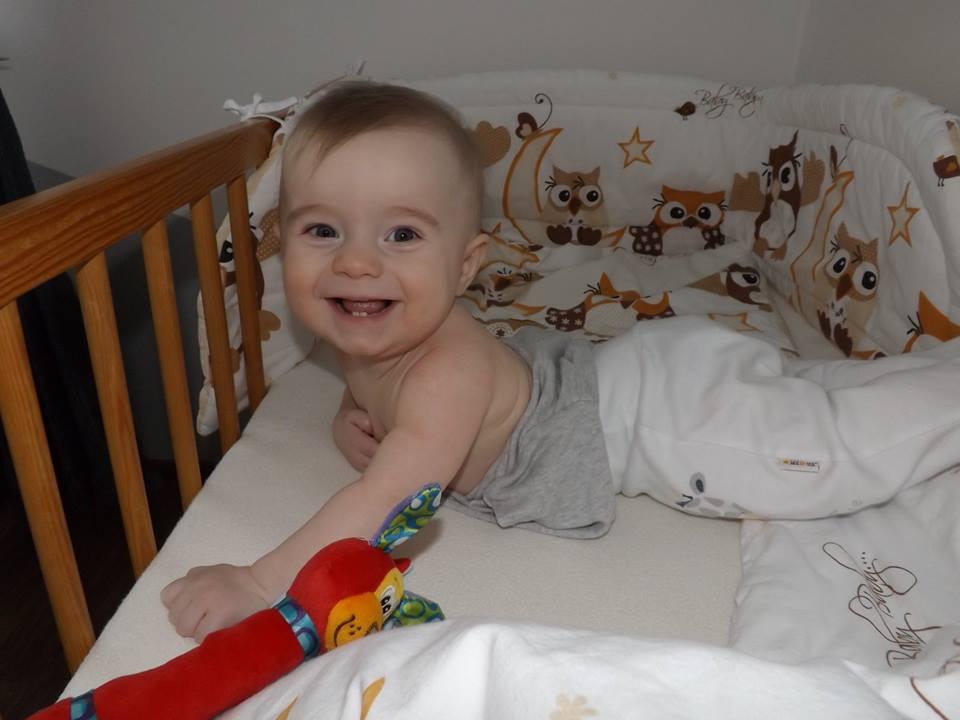 Na druhej fotke je synček tesne po zobudení, od radosti si až body vyzliekol 🙂