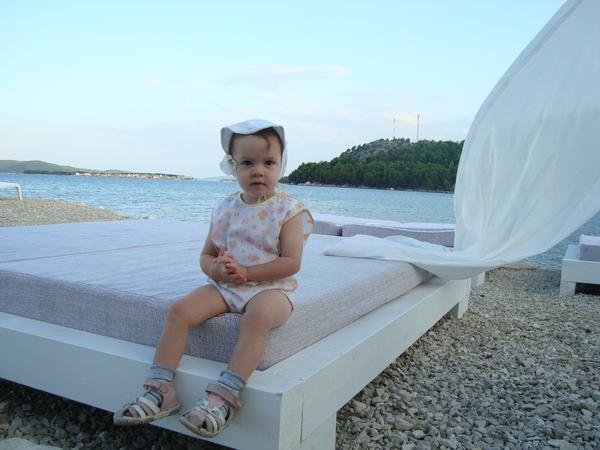 Na pláži pri mori sme mali takéto krásne postele a vždy ráno sme brali deti na skorú prechádzku spojenú s raňajkami, aby sa susedia na priváte mohli vyspať a my sa nadýchali zdravého morského vzduchu. Táto fotka vznikla o 6,30 ráno, a preto sa mi páči. Lebo bežne o 6,30 ešte spíme a pritom sa pripravíme o takéto pekné momenty.