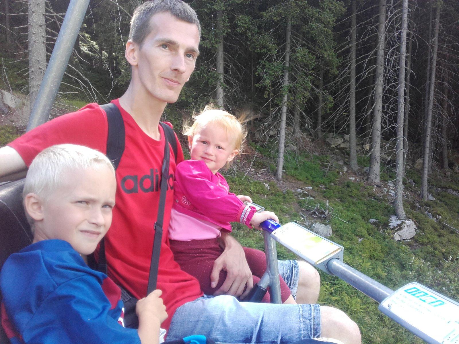 Foto z dovolenky. Obe naše deti sa tešili na lanovku. Obávali sme sa ako bude reagovať dcérka už keď sa budeme viezť. Či bude plakať, ísť dolu, báť sa.... Nakoniec sa neskutočne bál syn(čo je na foto i vidieť ☺) a dcérka celá natešená vozila by sa dookola. Mali sme čo robiť, aby sme ju udržali čo bajďalej od lanovky. A keď vidí Panorámu akočila by do telky. ☺