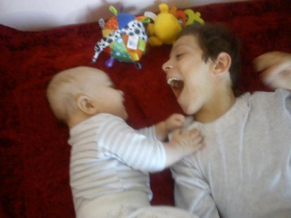 Je veľmi ťažké vybrať jednu fotku, avšak jedna z mojich obľúbených je určite táto. Napriek tomu, že je staršieho dáta (mladý pánko má už 5,5 rôčka a bráško je už "puberťák") a nie je vyhotovená profesionálne, zachytáva presne to, čomu som sa snažila a snažím učiť svoje dieťa a samú seba - že život je rozmanitý a byť zdravý je dar, máme rešpektovať aj potreby ostatných a pomáhať si navzájom. Napriek tomu, že je brat ťažko postihnutý a vo všetkom potrebuje našu asistenciu, je to krásne dieťa najmä tým, že sa neustále usmieva. Na tejto fotke sa prvýkrát "spoznávali" a "vykecávali", čo sa obom veľmi páčilo.. A nám ostatným o to viac ❤😍