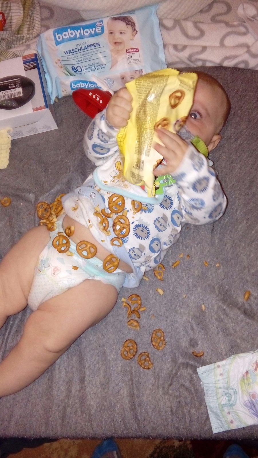 Vybrať obľúbenú fotku našej dcérky je úplne nemožné. Na akúkoľvek sa pozriem vynárajú sa mi spomienky (pomerne čerstvé, 2r.), konkrétne situácie s úsmevom na tvári a slzami šťastia v očiach, ale keď treba len jednu tak som vybrala našu papkáčku, ktorá je aj napriek 2-ročnému kojeniu od malička veľkým jedákom. Vlhčené utierky, obrúsky, mydielka máme po ruke hádam všade 🙂 inak sme ako malé prasiatka 😀