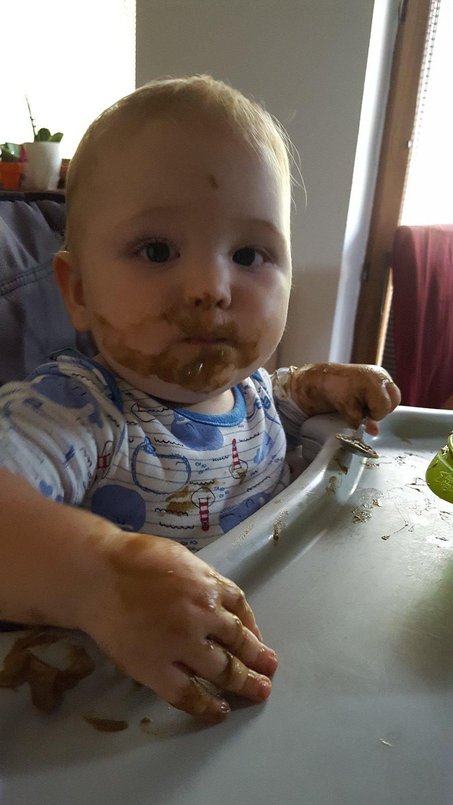 Pri tomto spôsobe jedenia sa u nás míňa veľmi veľa mydiel a šampónov,čo je už aj z fotky zrejmé.Bolo ťažké vybrať len jednu fotku,nakoľko väčšina fotiek je takáto,len v rôznych farbách jedla ;) Značka Bupi je jedna z mála,ktoré máme v obľube a keďže kúpanie je naša obľúbená činnosť,niekedy mám podozrenie,že ten bordel robí naschvál.