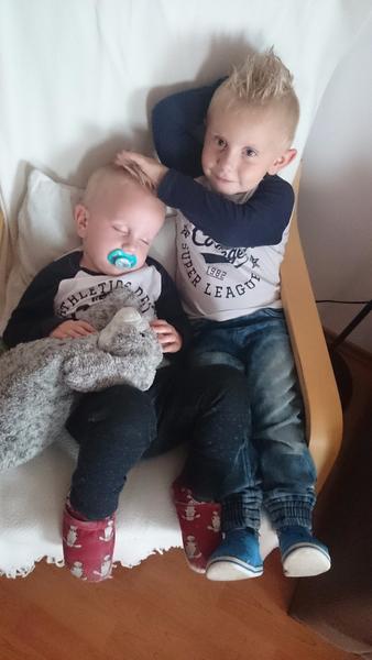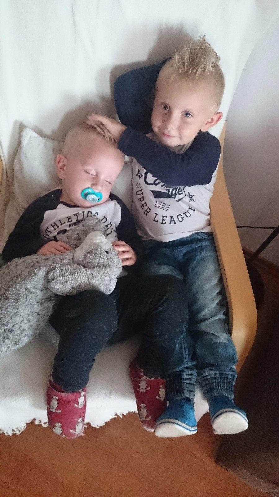 Medzi moje najobľúbenejšie fotky patrí jednoznačne táto. Naši chlapci sú vo všetkom veční rivali,mám pocit že sa dokážu hádať aj o tom kto sa rafinovanejšie hodí o zem pri vzdorovaní, ale raz za čas majú aj svetlejšie chvíľky. Táto bola jednou z nich keďže brata skolila únava bolo ho