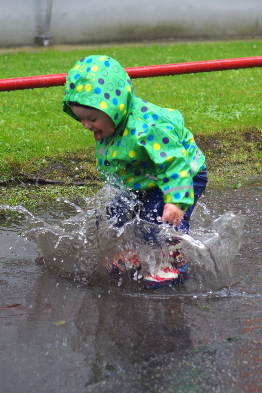 Mám veľa najmilších fotiek, a tak som vybrala túto, kde som drobcovi splnila sen 😀 a mohol v daždi 🌧 skákať po všetkých mlákach, ktoré nám prišli do cesty. Takú radosť dovtedy asi nezažil. Dokonca sa v jednej mláke aj vyváľal. Okoloidúci ľudia sa len usmievali. Zvrat nastal keď sme mali ísť dnu pretože mal plné čižmičky vody 😀 zachránila to vaňa plná teplučkej vody kde sa mohol ďalej nerušene čľapkať 🙂
