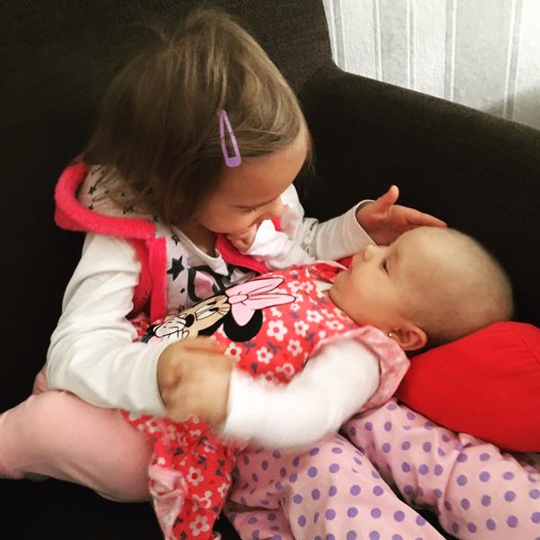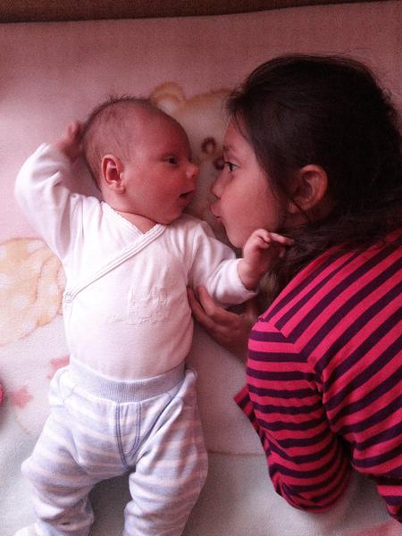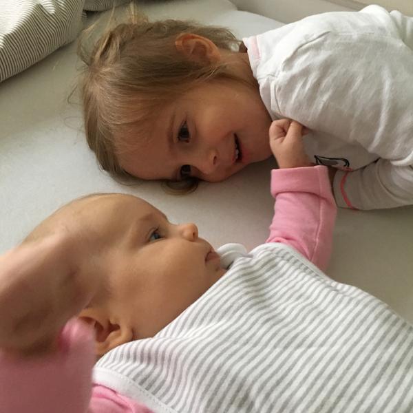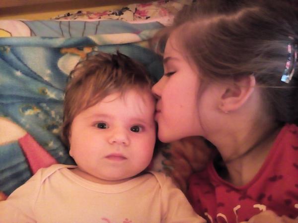 Už od začiatku tehotenstva s druhou dcérkou som mala ťažko na srdiecku. Bála som sa, aby staršia dcérka neziarlila. Aby mala maličkú sestričku rada. Túto fotku mám najradšej, pretože vidieť na nej ako sa moje slečny ľúbia a že moje obavy boli zbytočné. Počas gulania sa po posteli sa staršia zrazu prišla ku nalinkej a začala ju pusinkovat.