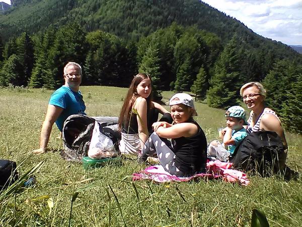 Pridavam jednu z velmi oblubenych rodinnych fotiek... Takych spolocnych, kde sme vsetci nemame vela, tak si ich cenim. 🙂 Su to pre mna zhmotnene spomienky na krasne zazitky s rodinkou..nase vylety za dobrodruzstvom...okamihy v kruhu rodiny pri roznych prilezitostiach... Toto bola nasa letna dovolenka, kde sme obdivovali krasy nasho Slovenska v Terchovej.. 🙂 Mame 3 deti a Bupi s nami vzdy cestuje tiez, pretoze je nas verny spolocnik pri ociste kdekolvek sa nachadzame, uz mnoho rokov 🙂. Najradsej mame umyvaciu penu Bupi. 😉