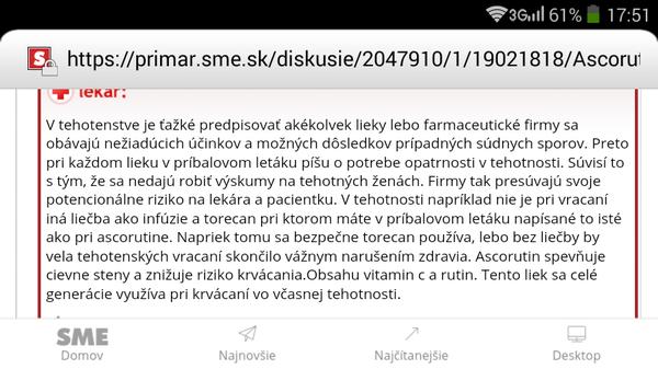 @matka1209 fuha to neviem ja musim byt vzdy vycurana :-O si pisala ze sa ponahlala ze? Ci take nieco mozno len preto :-O v tom sa zas nevyznam 🙂 hlavne klud hladkaj brusko a na ten ascorutin ak mas nejake zle nazory nanho opytaj sa kludne zajtra lekara alebo lekarnicky ale je vela bab co ho berie hlavne v prvom trimestri pri spineni 🙂 pri ascorutine pise na letaciku ze sa nema uzivat v tehotenstve no odpovedal lekar na tu otazku tak ti prilozim aj to aby si nemala obavy 🙂 a kludne sa opytaj lekarnicky ja som mala tiez obavy ale uz nemam lebo aj na modrom konikovi mas vela napisane o nom a babam zabral 🙂