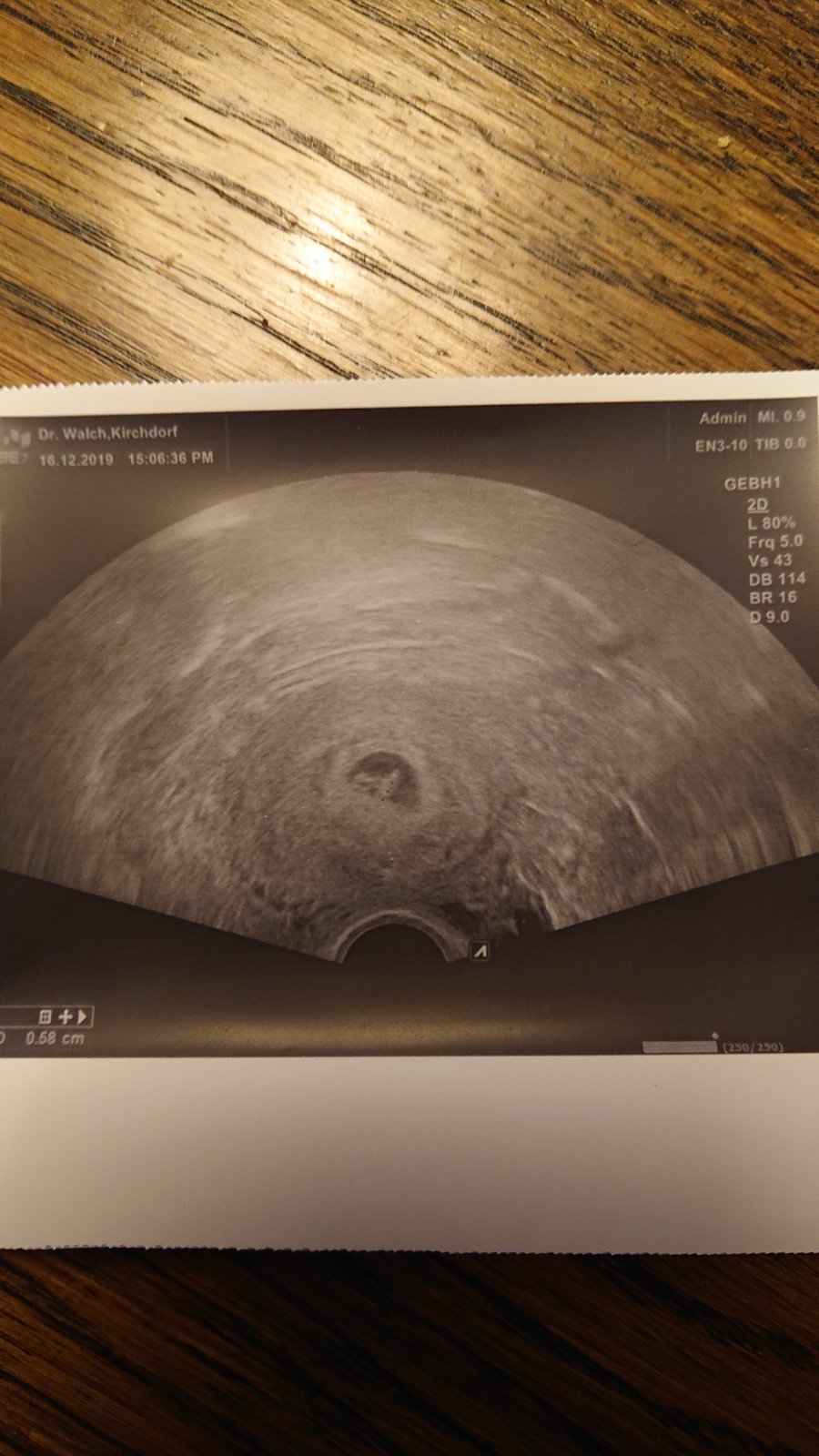 Hematom sa nachadza v dolnej oblasti dolneho polu pl. Vajca drobec ma 10,78 mm a hematom 10x14 mm hned pod nim