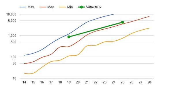 a ak si urobis krivku, tak je tiez normalna, prave preto sa pytam preco si myslis, ze je to hranicne? x os dni tehu, y os hodnota HCG, vzorove krivky a zelena je jej krivka