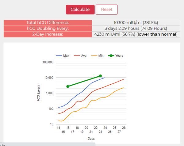 @bambulienka25 praveze to kalkulačka vypocitala, že hcg stuplo na dvojnásobok každých 74 hodín. Čiže každé 3 dni. Neviem či je to ešte v norme. A potom som našla toto, ale neviem čo je na tom pravdy.