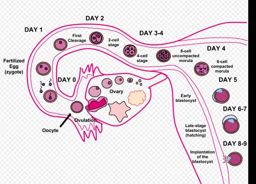 cize pokial by si skutocne mala pozitivny test uz 5 dpo, tak by to v praxi znamenalo, ze v krvi by si ho musela mat uz niekolko dni predtym, cize tak 3 dpo. ale 3 dpo ma vajicko este len 4!bunky a zdaleka nie je prepojene s krvnym obehom matky, vid obrazok nizsie.