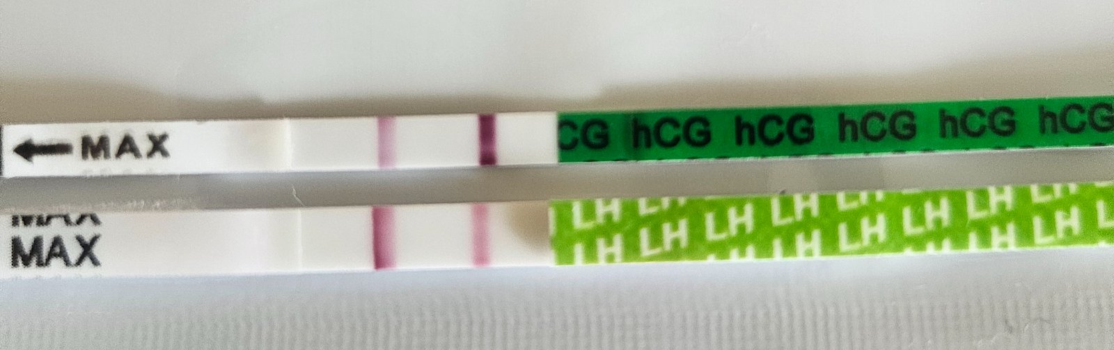 Ovulačny test je vtedy pozitivny, ked kontrolna ciarka je rovnako silna, ak nie este silnejsia, ako testivacia čiarka, čomu v tvojom pripade, tak nie je. Čiže ovulačný test je uplne negativny. Nechapem takto šaskovať s testami , ktoré nie sú určené k testovaniu tehotenstva, lebo reaguju úplne na iný hormón ako je potrebné v pripade potvrdenia gravidity. Gratulujem k potvrdeniu tehotenstva patričnym testom, lebo ten máš naozaj krasne pozitívny.