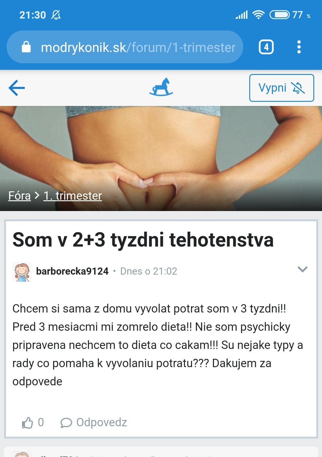 No neviem neviem asi vcera ci predvcerom tu bola diskusia ze zena potratila a je zase tehotna ale to druhe dieta nechce lebo stratila prve... Dost podobne..