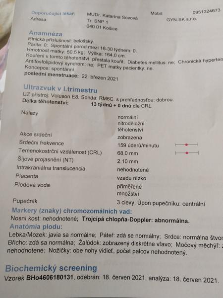 @hviera81 ahoj, ibaže moja stará gynekologická ma poslala do súkromnej ambulancie a tam mi robili skríning, ibaže už som štátu gyn. Zmenila som u nového gyn s pôjdem na druhotrimestralny skríning už do sonoclinic k inému, nakoľko vraj tam kde som bola je to cele len veľký biznis ale neviem. Uvidíme, ale ja verím v to ze všetko bude dobre 🙂
