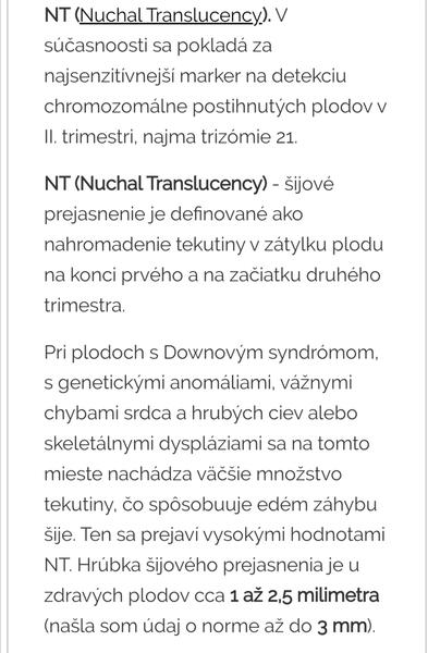 @marcela19791979 ☺️ Ja som si to tiež vyhladavala, mám výši vek, keď je nosova kostička prítomná je dobre, a NT máš v pohode 🍀☺️