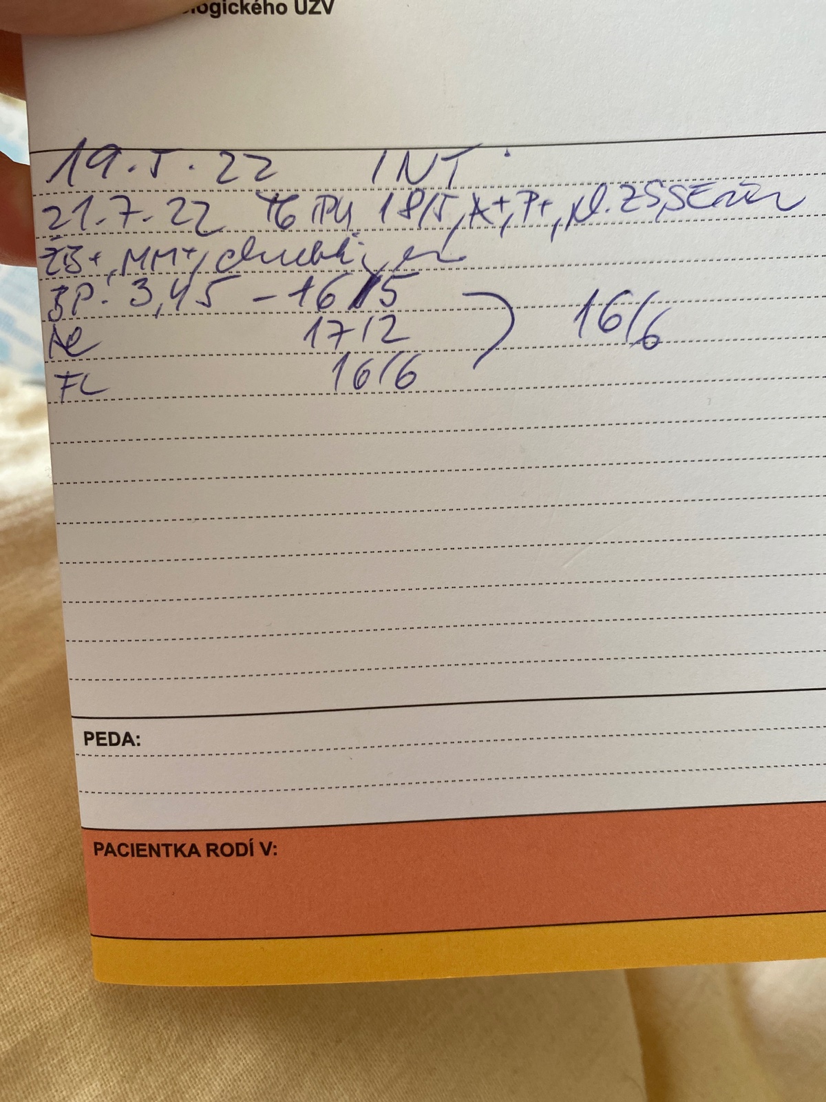 Ahoj no BP je vzdialenosť temných kostí. FL dĺžka stehennej kosti a ostatné neviem. To A+ môže byť aj krvná skupina R+ takisto. Myslím. Ostatné tiež budú asi namerané hodnoty ale už neviem čoho. 😉