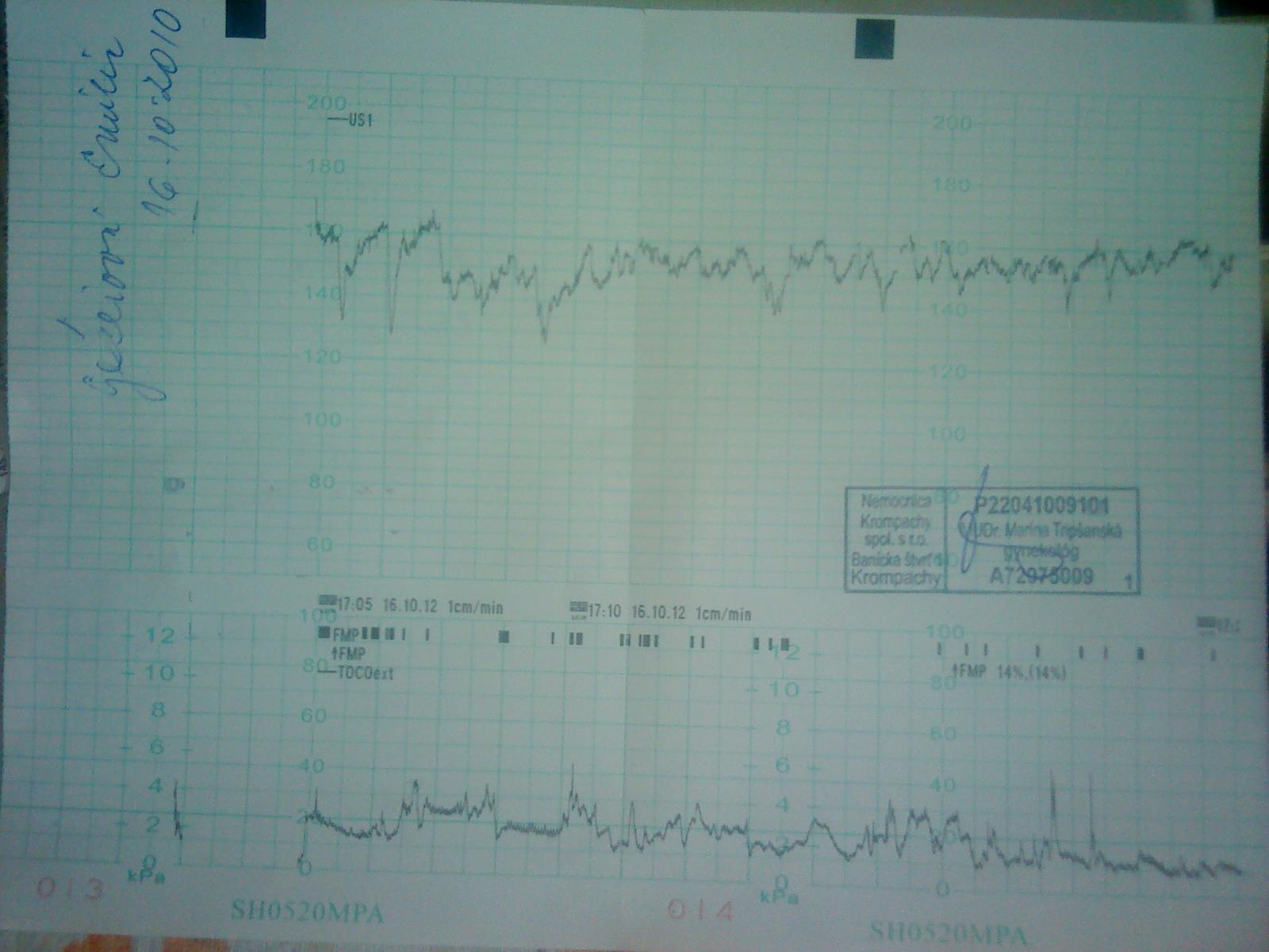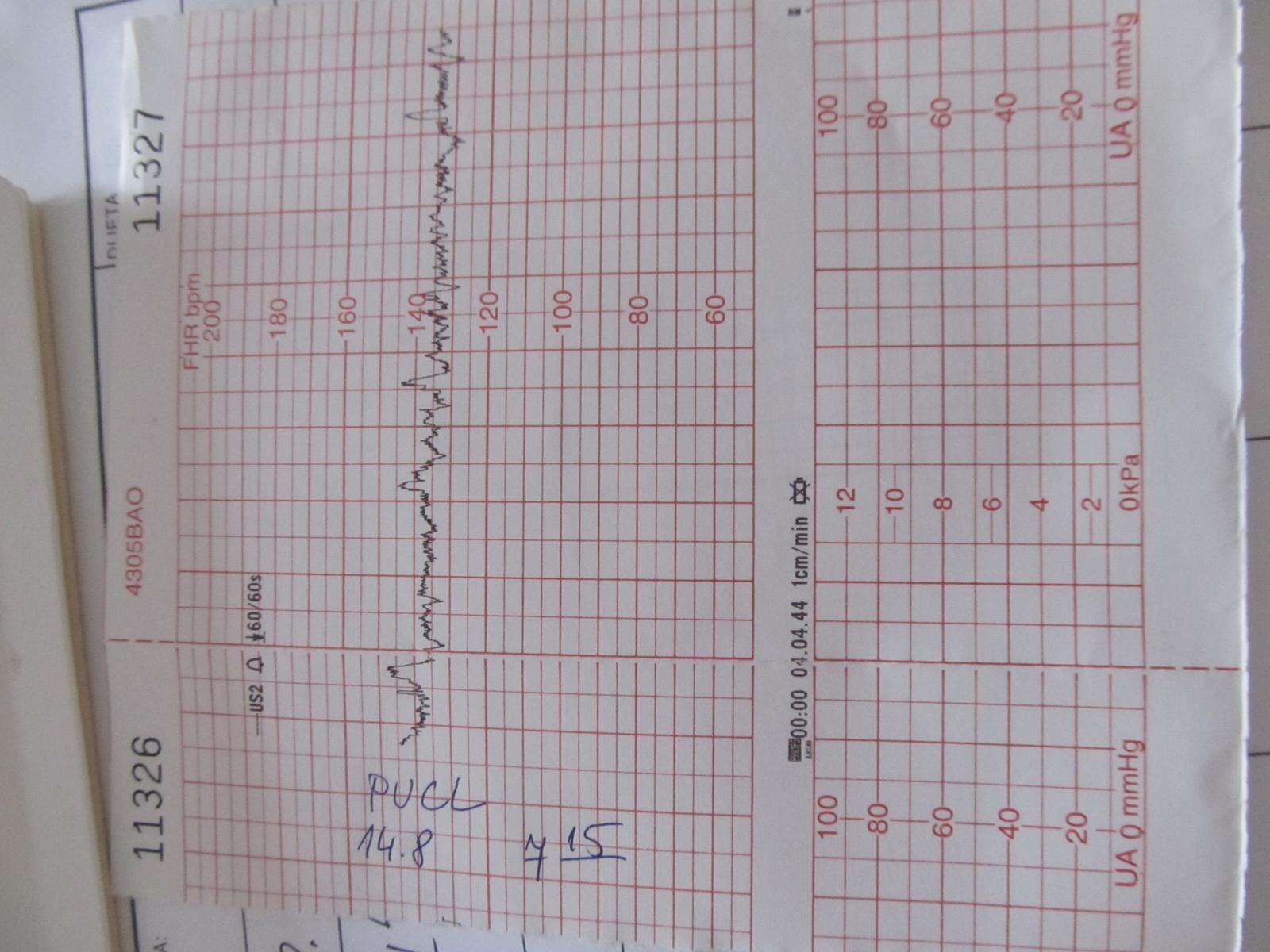 @lucinocka no mne dávali obe sondy od začiatku ..... takže mi meraju všetko ..... moja krivka je taká ako na fotke a teraz neviem či je nejak podobná ako tá tvoja alebo úplne odlišná a tedá ?zlá? toto je jediný CTG ktorý mi nechali .... tie prvé boli oveľa menej kľukatejšie a tento podľa nich je lepší