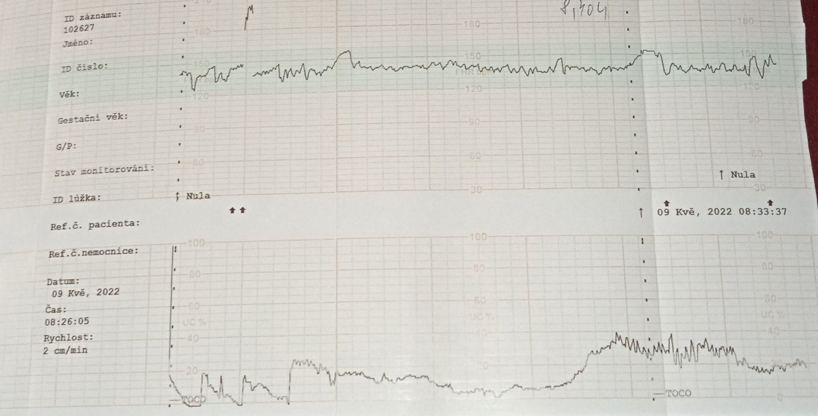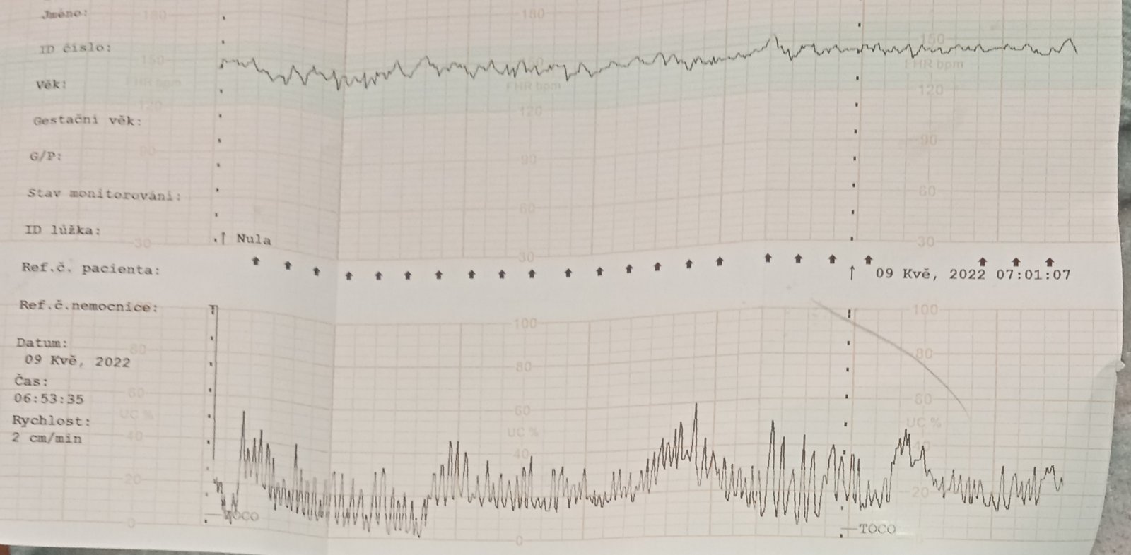 Ten spodný graf ti ukazuje kontrakcie, zatiaľ máš tam malé kopce, čiže nevyzerá to na kontrakcie, to by museli byť veľké kopce. Ale nič sa neboj to budeš hneď cítiť. Veľa šťastia prajem 😊