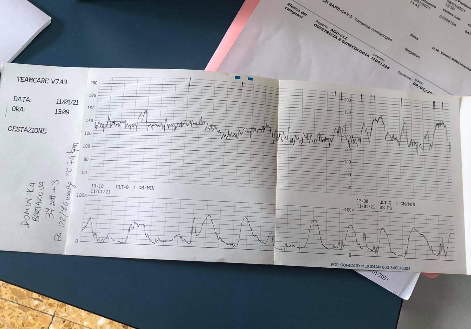 Môj graf keď som bola v 38 tyzdni. Mala som kontrakcie ktoré som ja necítila 😅 rodila som spontánne 40+1
