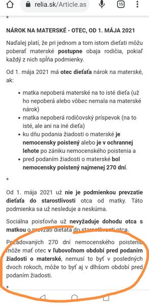 @kikuska_wedge ahoj zistila si nieco pls? Ja som zachytila niekde, ze je to mozno tak, ze otec moze mat tych 270dni sice 2 roky pred, ale nepretrzite, cize nemoze prerusit ani na den. Ale neviem ci je to pravda. A hlavne.... Si si ista, ze my spadame pod otca? Sme sice iny poistenec, ale niesme otec 🤷♀️