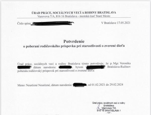 Hádam to tu môžem dať.. ja som potrebovala doklad o poberaní rodičovského- vyžiadala som z upsvaru a prišlo mi toto.. potvrdenie o poberaní v trvaní troch rokov od zverenia neodkladka. Malá je narodená v decembri..