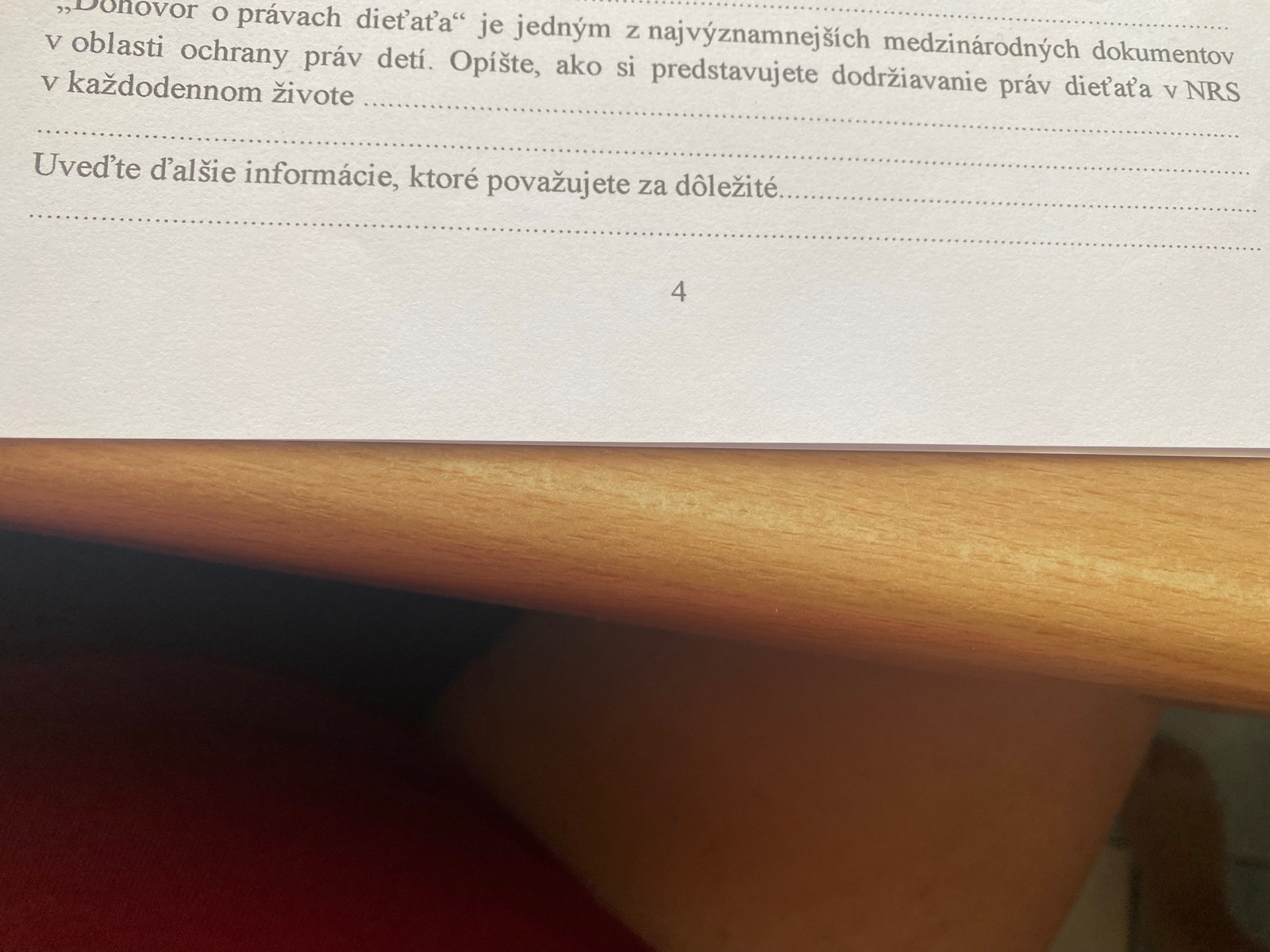 @pellka Ak myslíš tú otázku o právach dieťaťa, tak tam sa nedá uviesť všetko z nich, ale asi by som napísal to, že "Budem zohľadňovať záujmy dieťaťa pri všetkých mojich rozhodnutiach a budem sa mu snažiť vytvoriť pocit domova kde bude prijímané také aké je a bez diskriminácie".