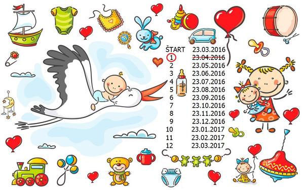 Prvý mesiac na čakačke za nami 😀 Na túto počesť som si vyrobila škrtací kalendár. Keď môžu tehuľky, môžem aj ja. Len ten koniec je taký neistý. Dúfam, že nebudem musieť pridávať viacej mesiacov.