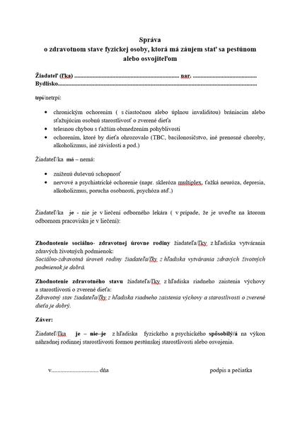 @opicka2 nam ho dal lekar. a aj na nete tak pisu - správa o zdravotnom stave fyzickej osoby, ktorá má záujem stať sa pestúnom