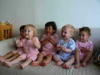 Júlia, krásne fotky, krásne deti! Tie tmavé sedia jak päť peňazí a tí blonďáci obaja akí živáni! Nech niekto vypúšťa ešte klišé o cigánskom temperamente....u vás to vyzerá byť úplne naopak. No a D.! ...ja žasnem, jak toto obživlo!