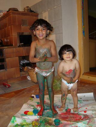 Kika sa zmaľovala jak Maor na výročnú slávnosť. Markétka teda decentnejšie. A vonku leje a leje......