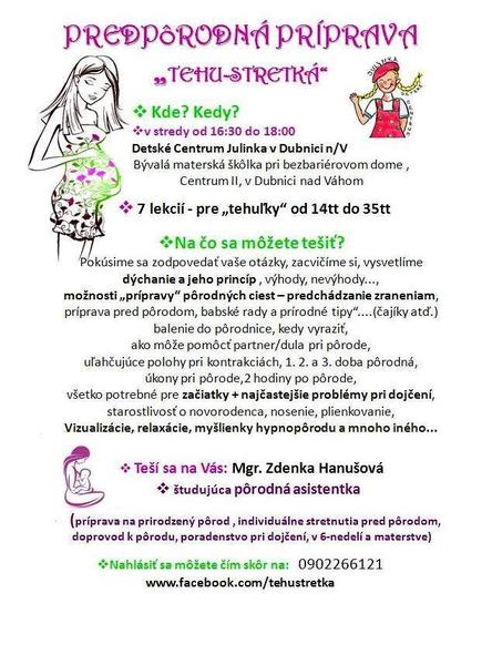 prosm Vás neviete niekto nieco o tehu stretkách v Dubnici nad Váhom. Mne to už dávnejšie spomínala jedna známa, a bola veľmi spokojná. Budem Vám veľmo vďačná za akékoľvek info, kontakt.