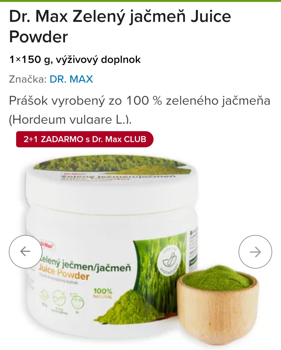 ja kupujem zelený jačmeň Green trio z DM predajne...žiadne nežiaduce účinky, možno prvý týždeň hnačky ale inak nič, dávam aj synovi, trávenie je lepšie a syn má odvtedy menší počet epi záchvatov