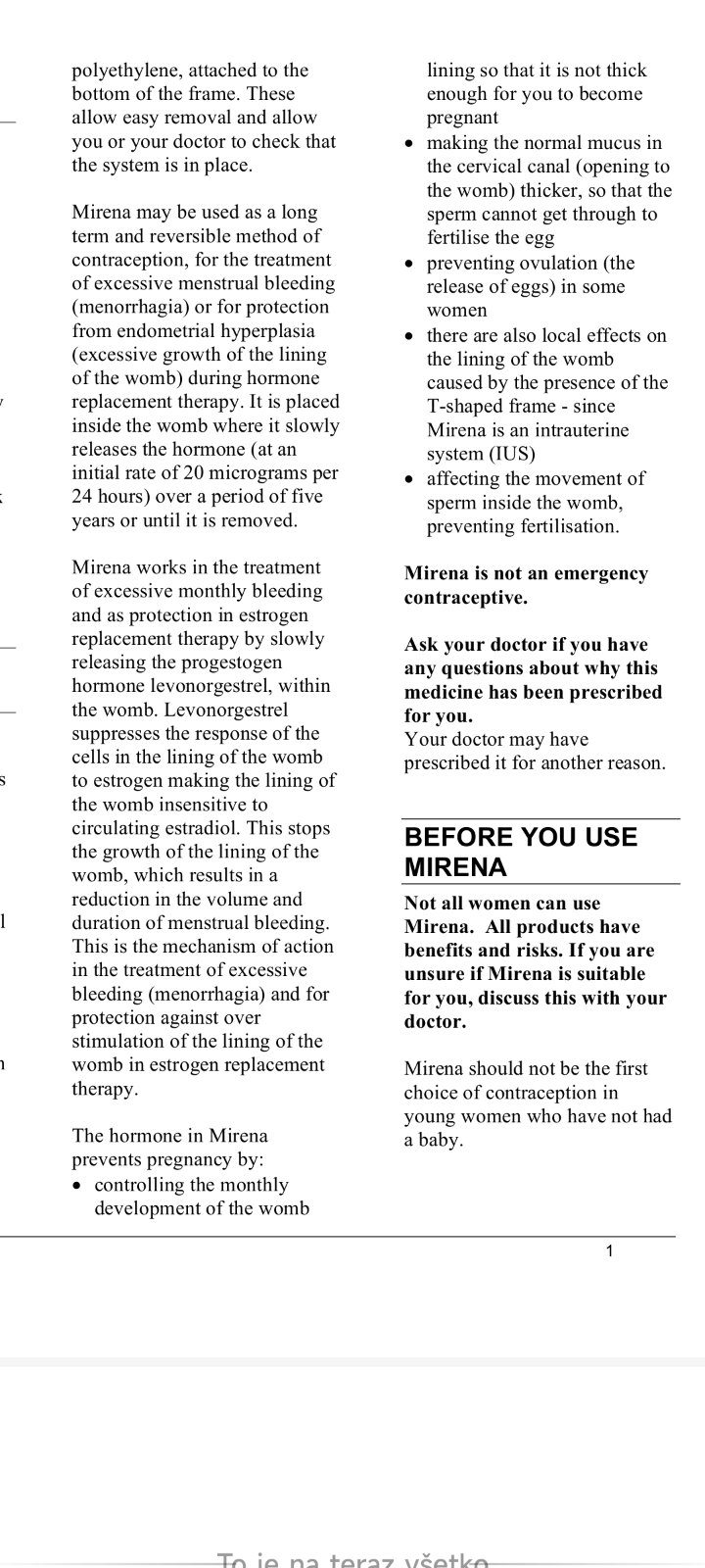 Ja mam tiez mirenu a odkedy ju mam vlozenu, tak ani neviem kedy mam menstruaciu a ani si ju nesledujem...ja mam gynekologa, ktory je fakt odbornik a ma uz 60 r a za cely svoj zivot mal iba jednu pacientku, ktora s mirenou otehotnela...takze ja mirene verim a nic nesledujem...v maji idem na rocnu prehliadku, tak dufam ze je na svojom mieste, tak ako ma byt 😉