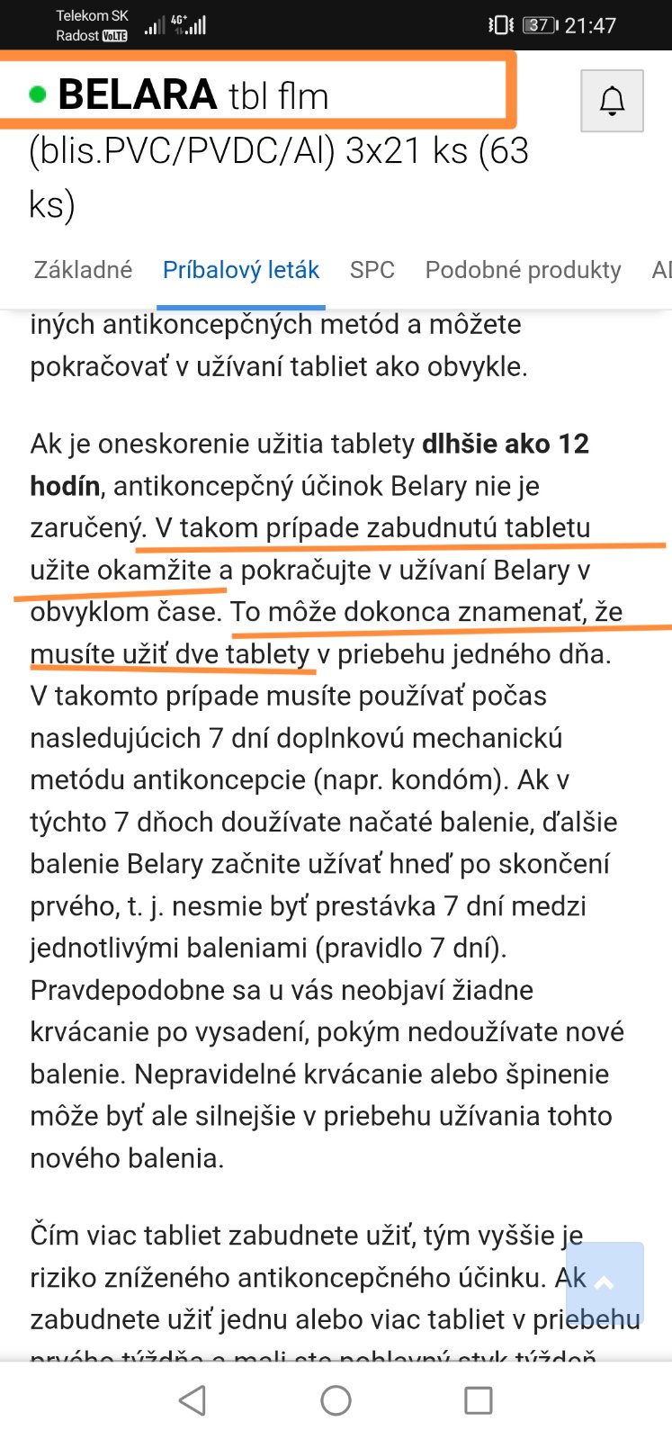 @janai1 v mojej ( belara ) je vyslovene napísané že užiť druhu tabletku len do určitého času od denného podávania a určite nie 2 naraz