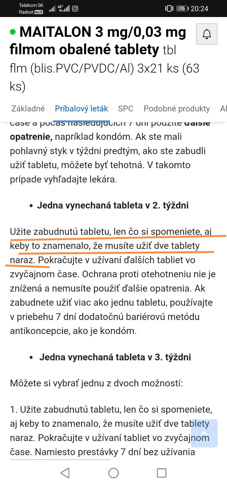 No mne dr práve tak povedala, keď som raz vynechala, že dať dve naraz 🤔 pri druhom týždni podľa môjho príbalového letáku je šanca malá. Ja som si minule zabudla dva dni po sebe a, chvalabohu, sa nič nestalo.