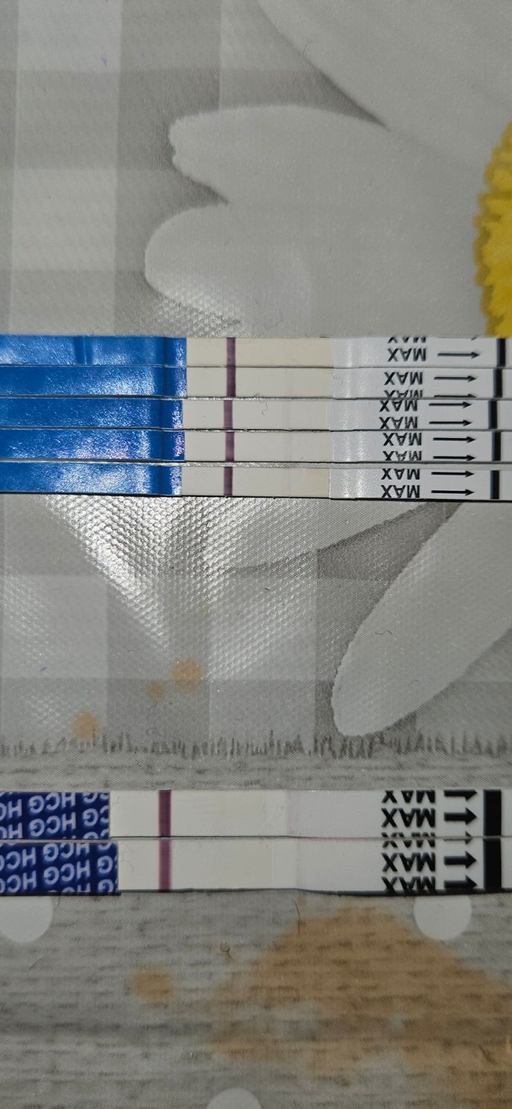 @lucinka12356 .ahoj tak že dnes som volala v car a oni mi povedali že gonasi už určite nemam v tele.tak že dnes som testovala a čiarki podla mna silnu ale skusila som inej znački a tie skoro nevidno tie čiarki su skoro nevidno posielam foto proaim vaše nazori.tie dole 2 su inej znački rapiclear a horne lekaren plus čo si mislite?