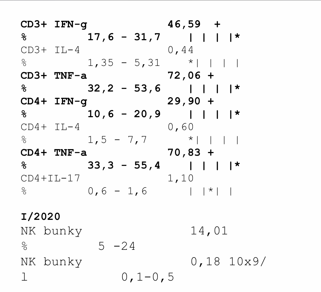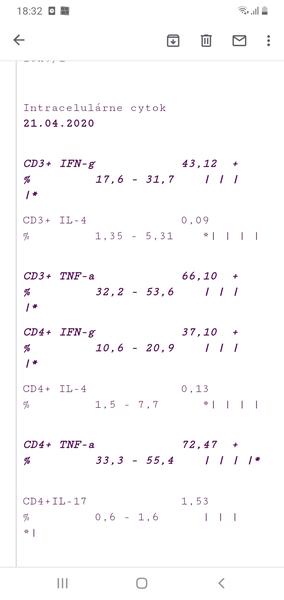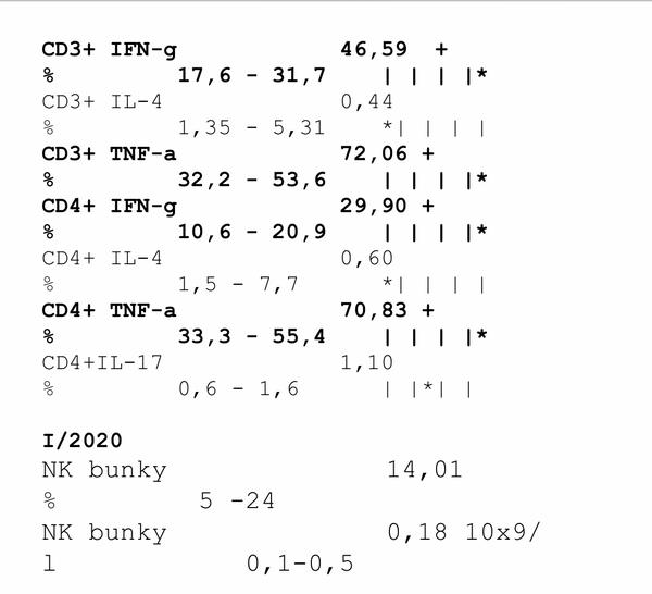 Totiz mne na cytokiny mala som okolo 67 hodnotu pomohol iba prednison.Medrol mi znizil iba nk bunky a mala som hrozne neziaduce ucinky ale dalo sa to zvladnut.Drzim vam palce.
