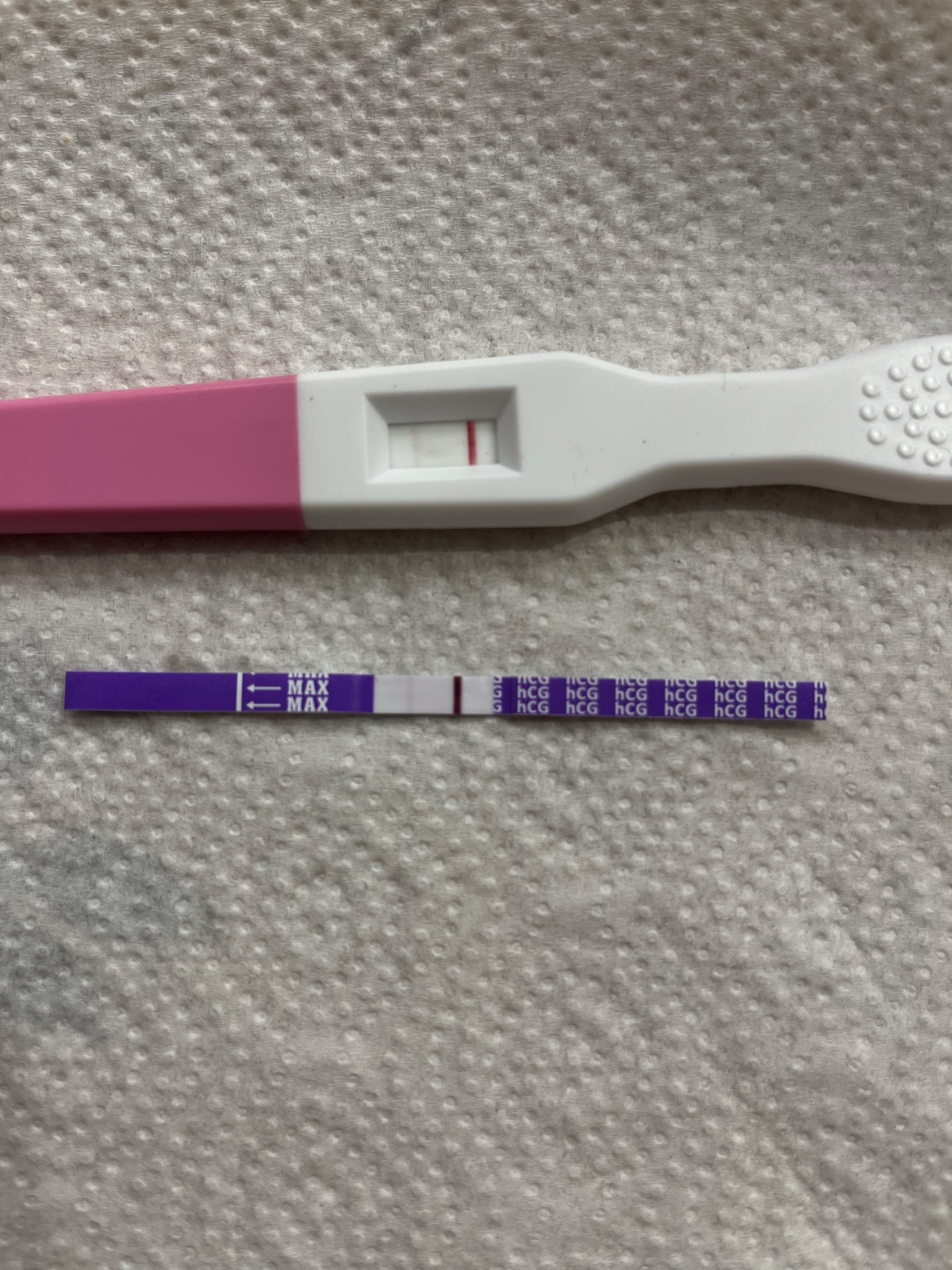 Ja som dnes 8 dpt po vklade 5 dňového embryomimča. Včera som si robila jeden digitálny test, čo ukázal 1-2 týždne tehotná. A urobila som si včera večer jeden tyčinkový test, čo je napravo a naľavo je z dnešného rána. Vidíte to tam aj vy? Alebo mi proste šibe už?