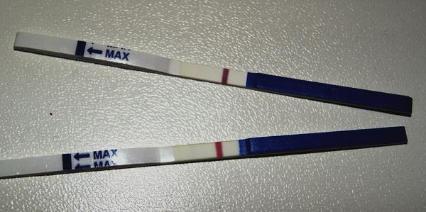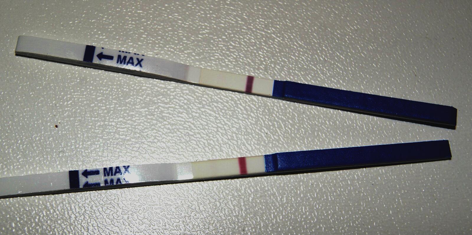 Zienky moje, co si myslite o tychto mojich testoch? Samozrejme som zase nevydrzala, ci mrcha pride alebo nie. Mala by dojst zajtra, dnes mam 14. den od podania Pregnylu. Ten vrchny je z dnesneho rana a ten spodny z poobedia....Na tom rannom ja nic nevidim, len mi povedzte ci toho ducha na tom druhom si nahodou zase nedomyslam....
