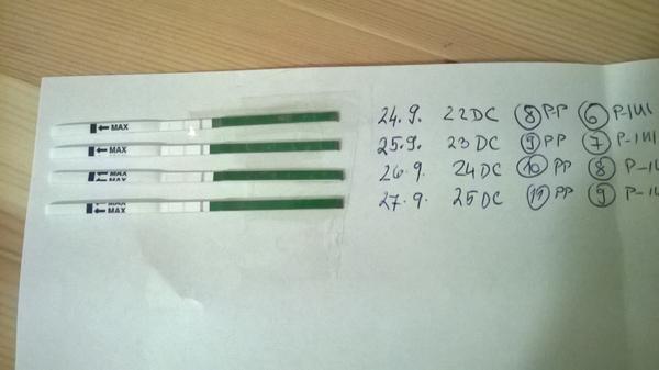 PP znamená počet dni po pregnyle a PIUI počet dni po IUI. na fotke to nie je také jasne...ale naživo prvá je najtmavsia, potom bledsia, ešte bledšia a potom štvrtá je cca ako druhá