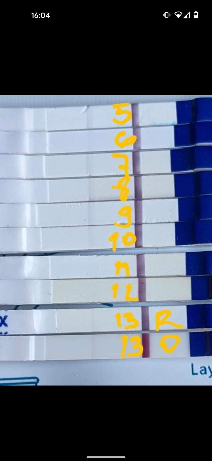 @lienka_9 @lienka_9 bohuzial nie, krv som mala negativnu. pridavam aj tie druhe testy, boli robene kazdy den vzdy rano, az na 13ty, kde som robila aj na obed. najskor boli pozitivne kvoli ovitrelle, potom som myslela ze uz vidno nieco ine. na krv som isla skoro s istotou, ze sa to podarilo a prd...