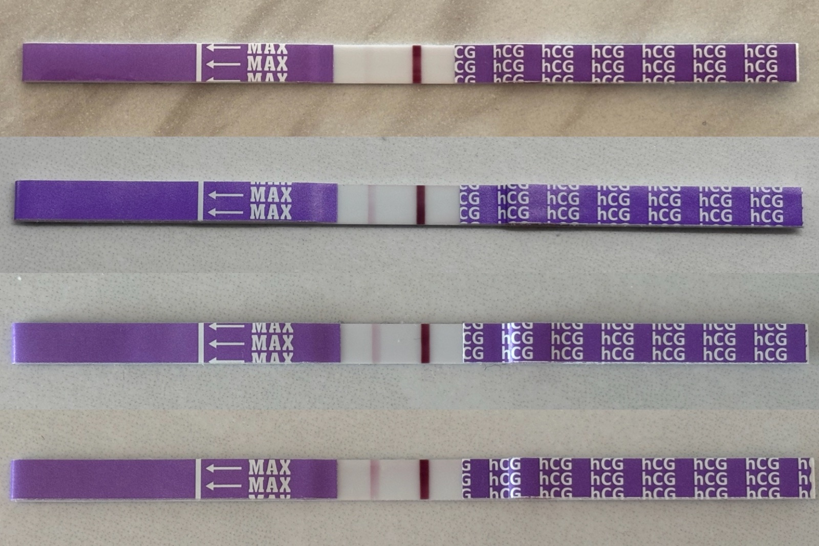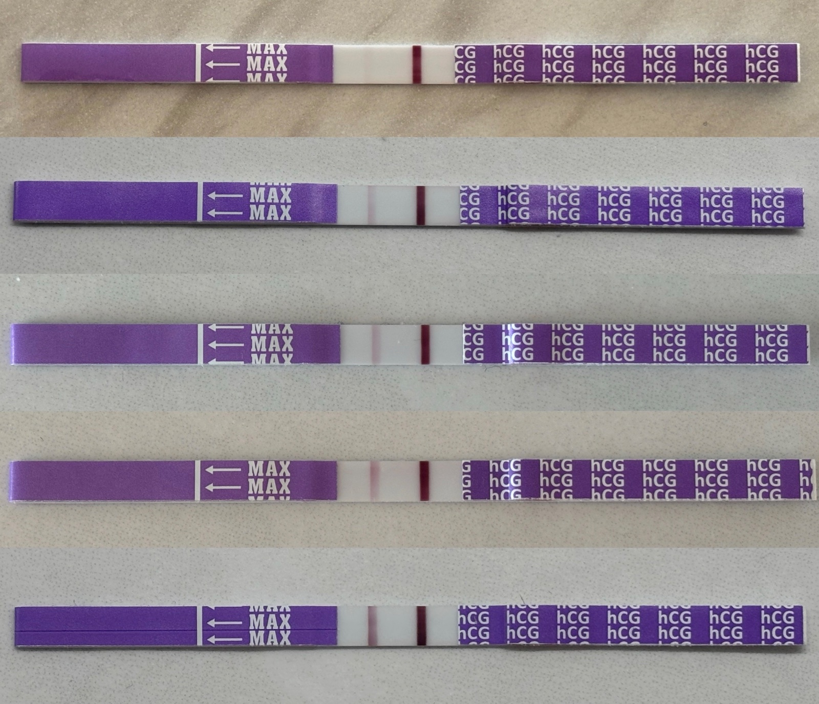 @katbog krasne testy. Moc moc drzim palce. Mne bolo divne uz 2 den od vkladu a na 9 den som mala taku silnu ciarku,ze som neverila hned nabehli 2 a teda je jedno babatko a to som mala na 14dpt 3100 hcg. A ono tieto mamatesty maju ovela viac farbiva ako dr max,ja som si robila obidve znacky naraz pre porovnacku a dr max bol o polovicu slabsi. Cakame na dalsie testiky