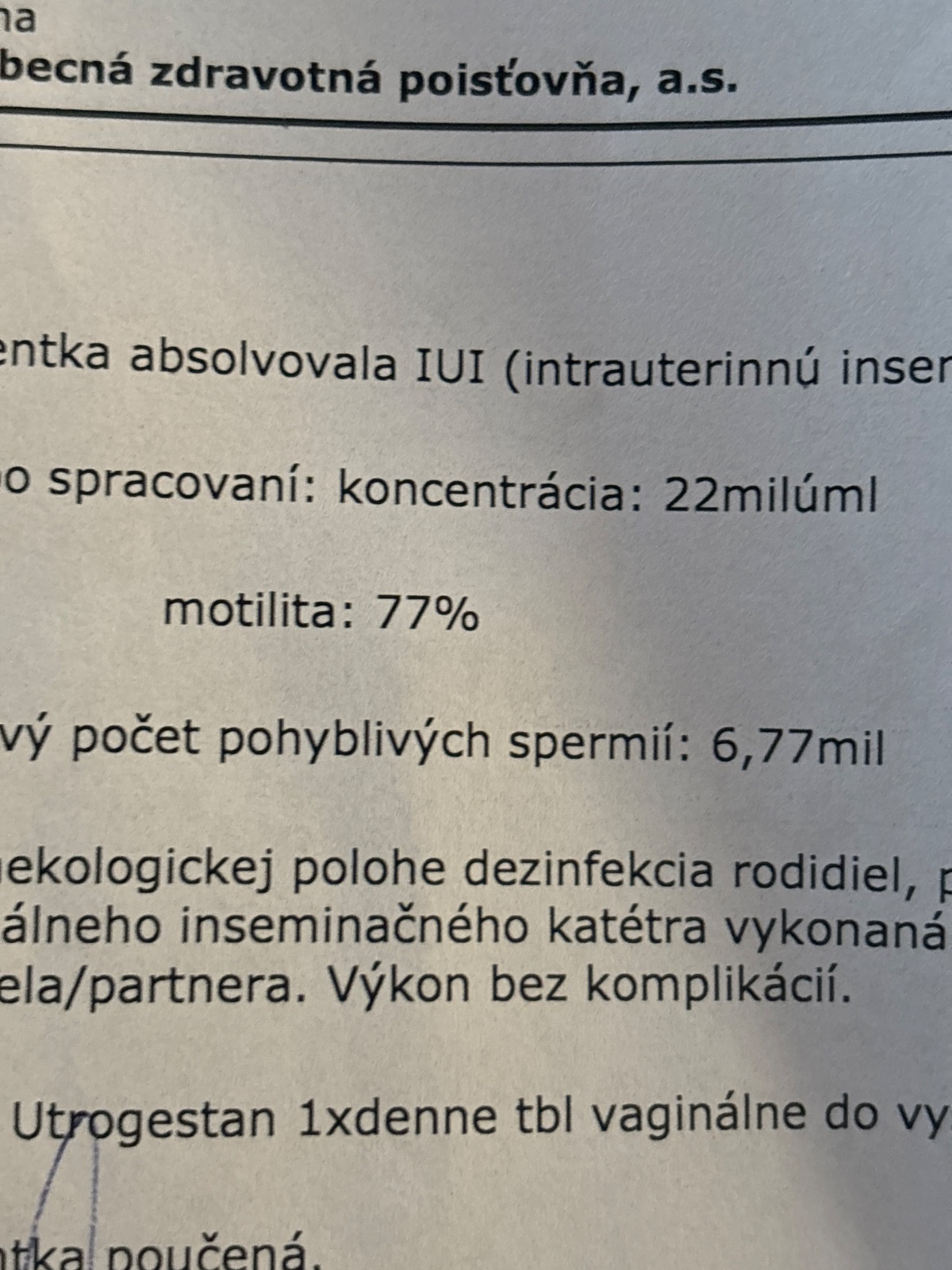 Prvé IUI nič,na druhé sme prišli ani nám ho po selekcii nespravili že to nemá zmysel ani jedna vhodná tam nebola tak potom sme podstúpili IVF 2 vklady nič dali sme si pauzu a mesiac nato som otehotnela prirodzene🙈.