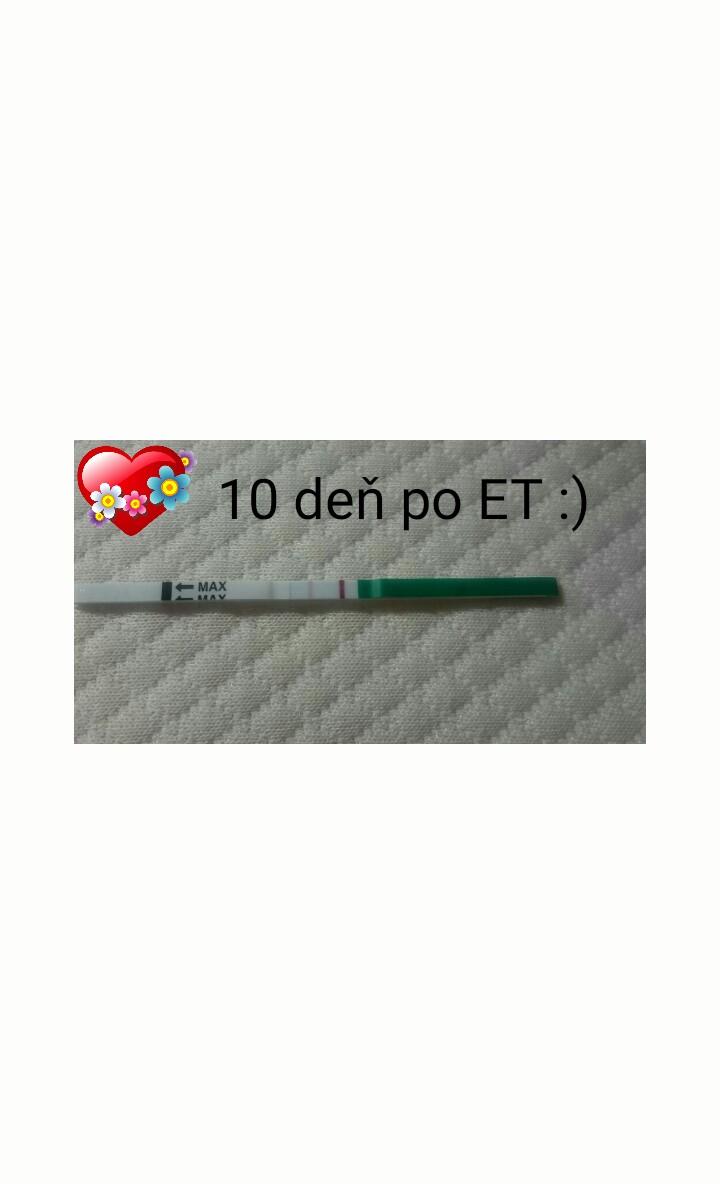 @desza17 veď určite,to máš ešte čas,ja som prvýkrát testovala 6 deň po ET-duch a potom 11 deň po ET bola ciarka ale slabšia a viac som netestovala lebo na 13 deň som išla na krv ..tam to bolo už iste..Ešte počkaj