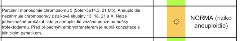 @erika283 ach kiežby. Toto presne mi prišlo v správe prikladám foto len neviem či to bude dobre vidieť lebo je to orezane. Popravde ani ja netuším čo to presne znamená a ako to funguje. Preto povedali, že treba ísť na pohovor a genetikom. Tiež má to zaujíma. Lenže som sa na to predtým bližšie nepýtala keďže som verila že jedno zo zdravých embryjok sa na 100 % prijme. Ja som mala tento rok 30, nie je to take zle vekovo, ale keďže chceme 2 detičky tak ani najlepšie.