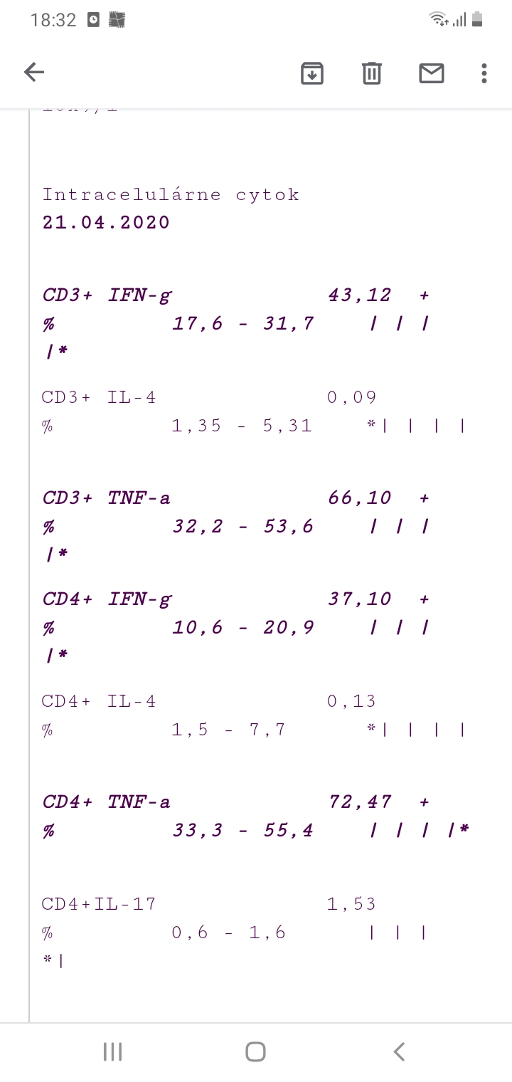 @butterfly333 A môžem sa spýtať aké hodnoty citokínov si mala? Pomohol Medrol a intralipidové infúzie ich znížiť? Ja som doniesla Koukalovi tiež lekársku správu z repro.imuno, okrem vitamínu D mám všetko v norme, len mi lekárka hovorila, že aj keď sú všetky hodnoty v norme, niektoré sú z hľadiska reprodukcie zvýšené a tiež mi odporúča intralipidové infúzie. Koukal sa na to kouknul 🙂 , zaškrtol si tie hodnoty a povedal, že na to se podívame pak😉 Ha, a teraz aby bolo z toho človek múdry.