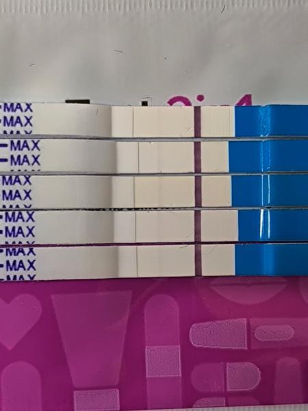 Robila som si aj dr max test tie čo doteraz tam mi vyšla o minimum silnejšia čiarka druhá čiže stále slabá no neviem či slabá na 8dpt 🤷🏻♀️